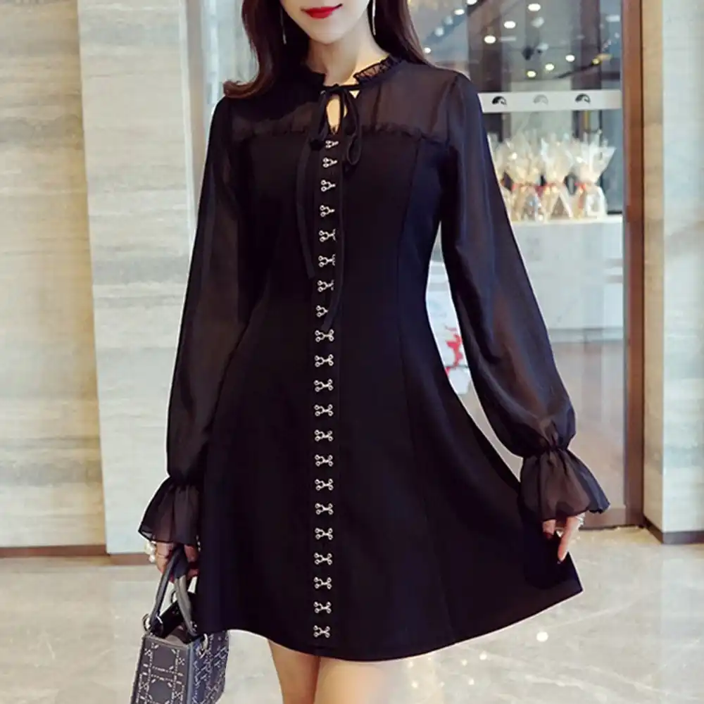 Women Fashion Black Vintage Elegant Office Lady Date Night Dresses 2018 Autumn A Line Lace Up Girls Cool Plain Female Dress Aliexpress Date Ideas At Home Night In